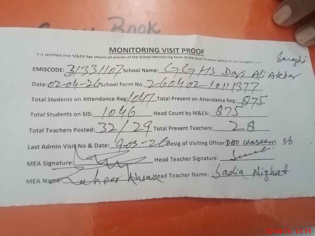 | EMIS Code: 31331107 | Name of School: GGHS DARI ALI AKBAR SANGHI | |||