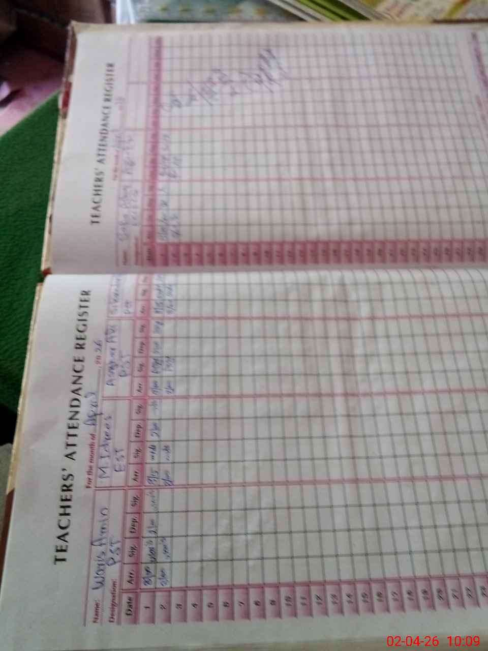 | Name: MU**** Id**** Designation: (School Headmaster's/Headmistress's) EST Phone/Cell Number: 03**** |