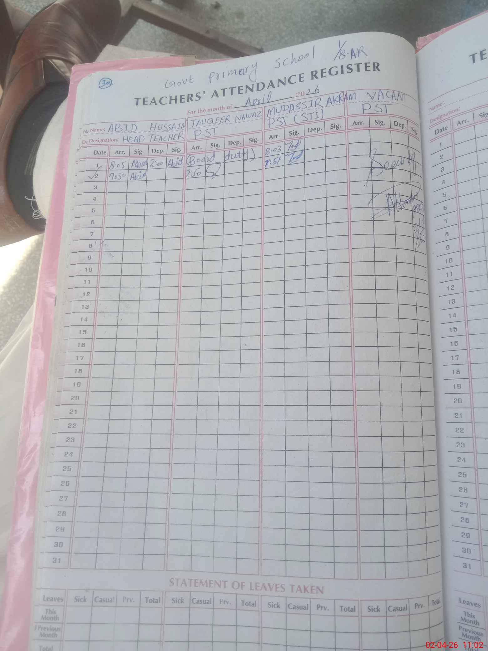| Name: Ab**** Hu**** Designation: (School Headmaster's/Headmistress's) PST Phone/Cell Number: 03**** |