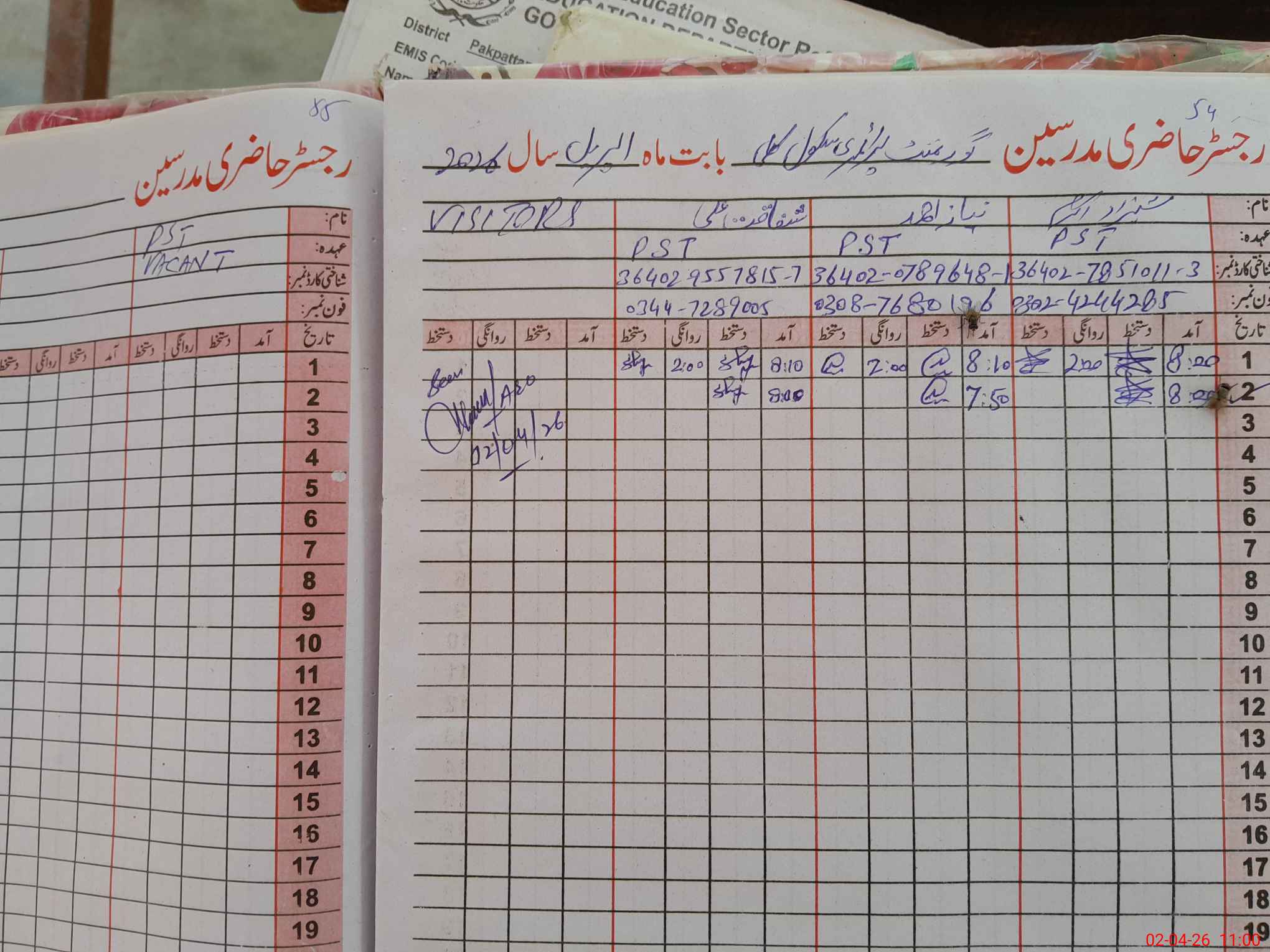 | Name: SH**** AK**** Designation: (School Headmaster's/Headmistress's) PST Phone/Cell Number: 03**** |