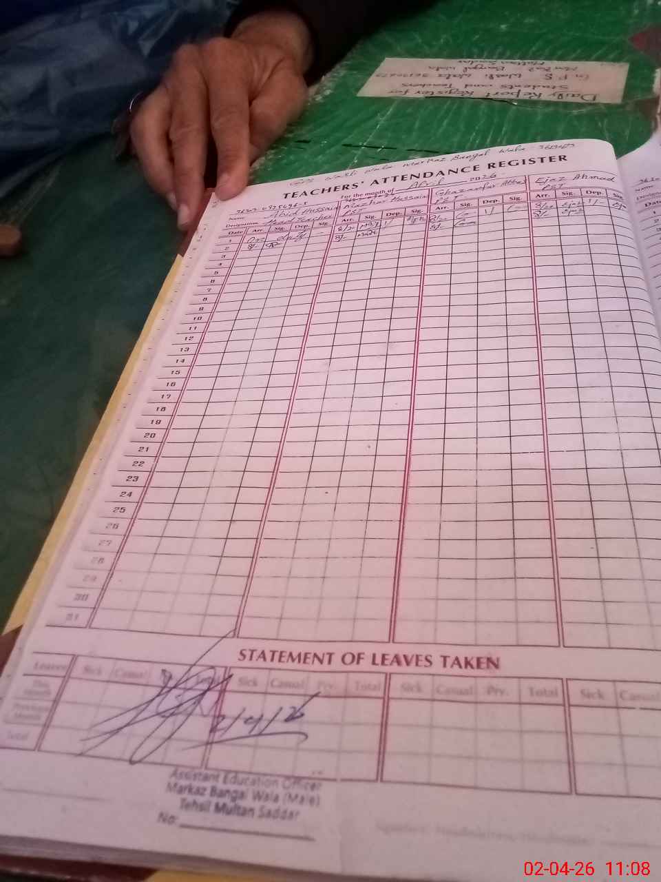 | Attendance Register | Head Teacher | MEA with School | Visit Proof |