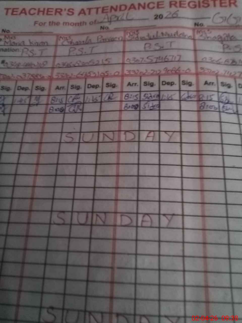 | Monitoring Date: 02-04-2026 | Start Time: 02-04-2026 09:15 AM | End Time: 02-04-2026 09:46 AM | Name of MEA: J-**** MU**** NA**** SA**** | |