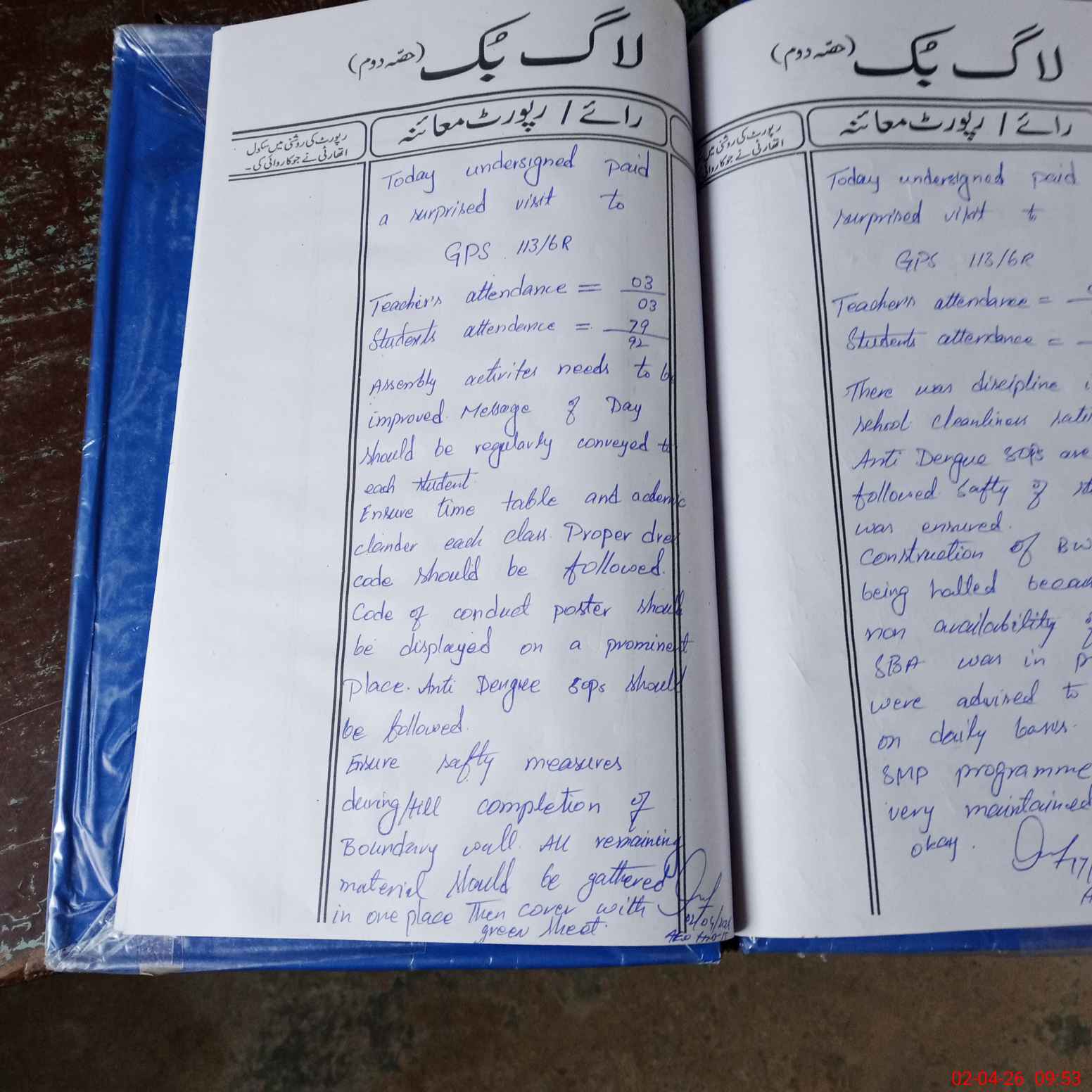| EMIS Code: 31140174 | Name of School: GPS CHAK NO 113/6-R | |||
