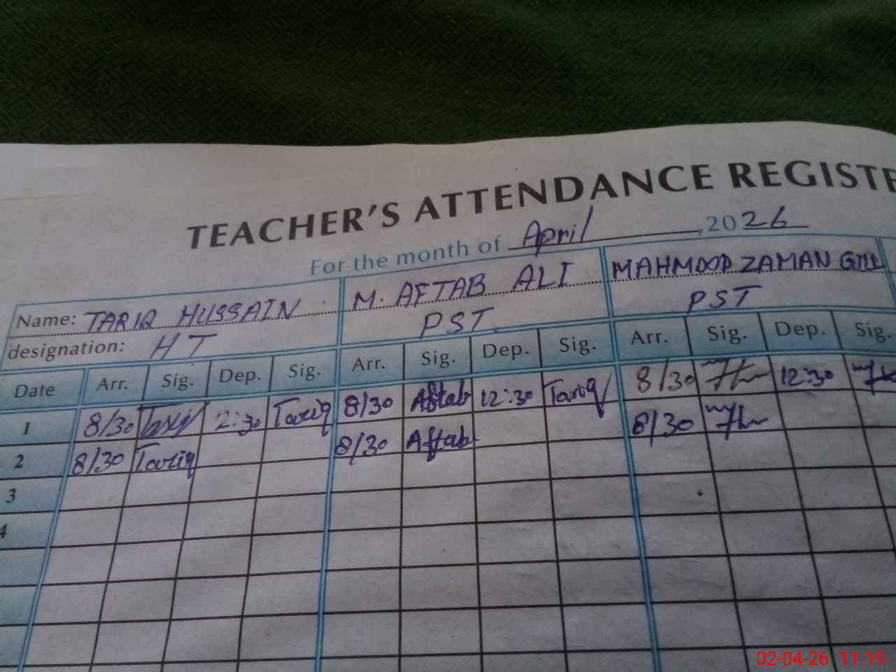| Name: TA**** UH**** Designation: (School Headmaster's/Headmistress's) PST Phone/Cell Number: 03**** |
