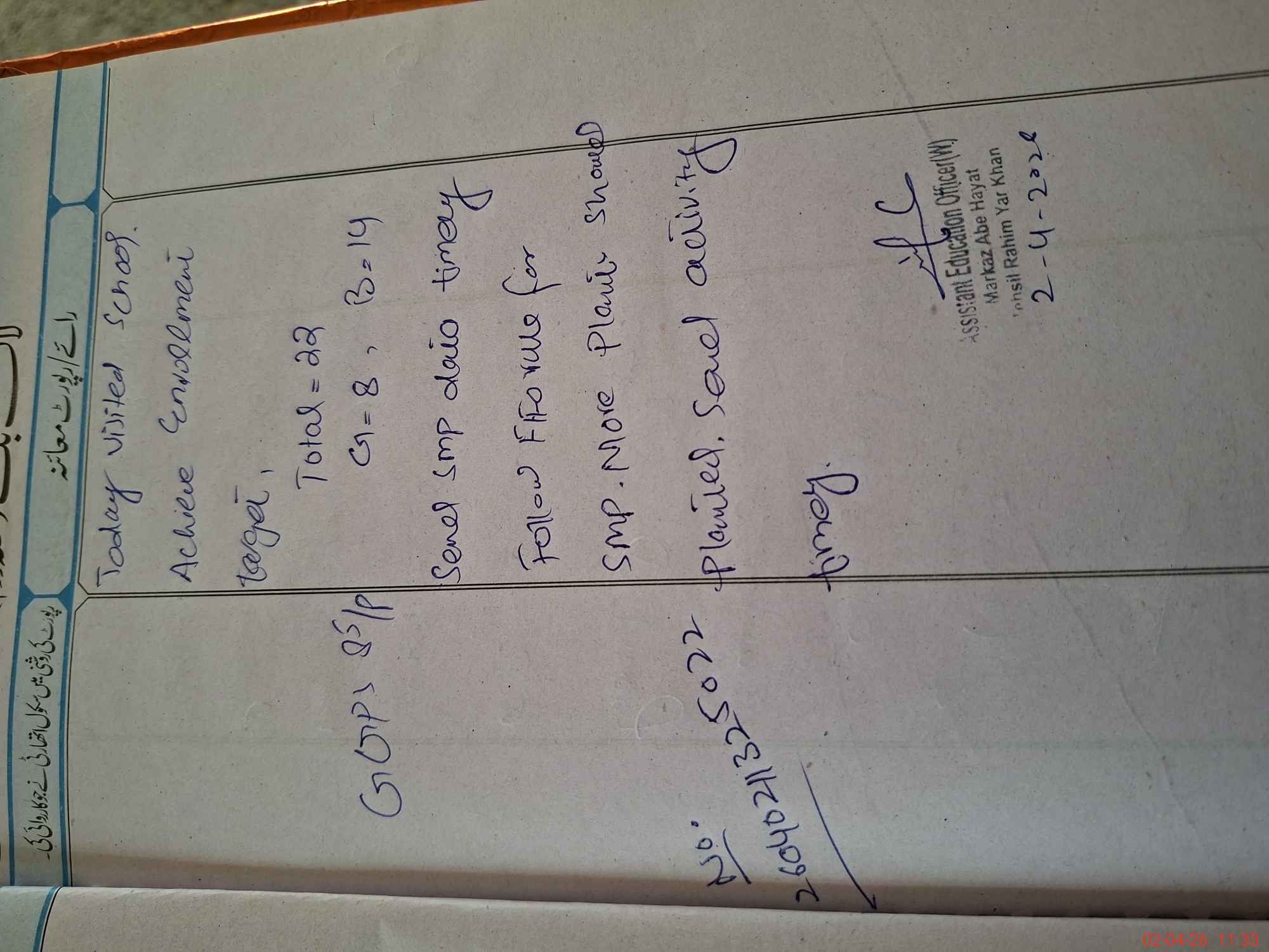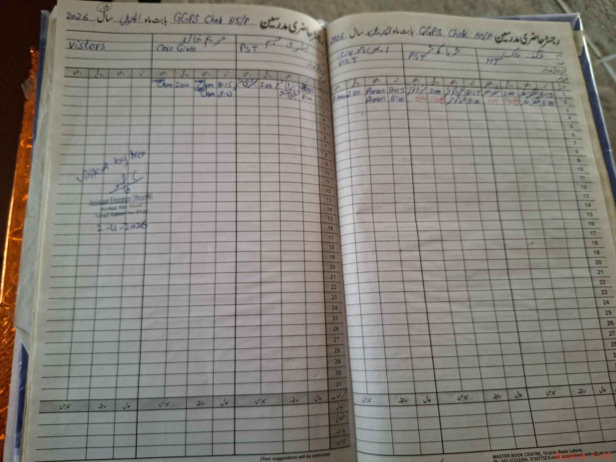 | Attendance Register | Head Teacher | MEA with School | Visit Proof |