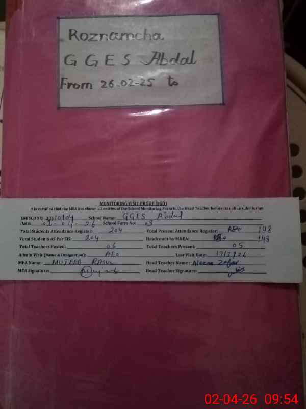 | EMIS Code: 38410104 | Name of School: GGES ABDAL | |||
