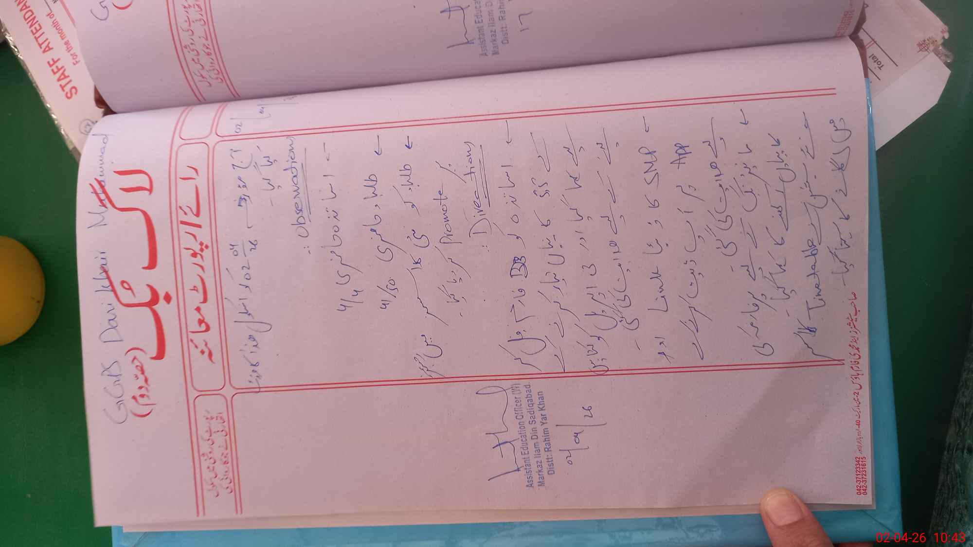 | District: RAHIMYAR KHAN | Tehsil: SADIQABAD | Markaz: ILLAM DIN -FEMALE | Level: Primary | |
