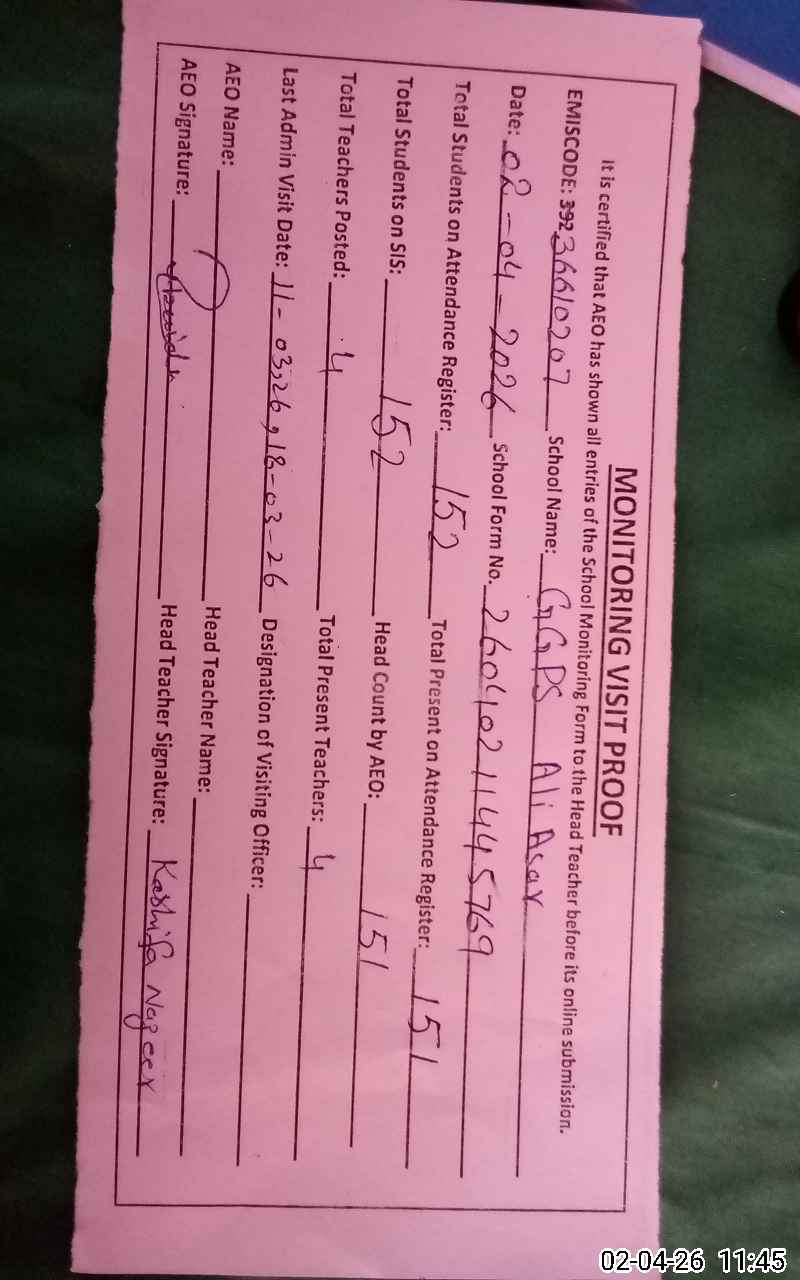 | EMIS Code: 36610207 | Name of School: GGPS ALI ASAR | |||