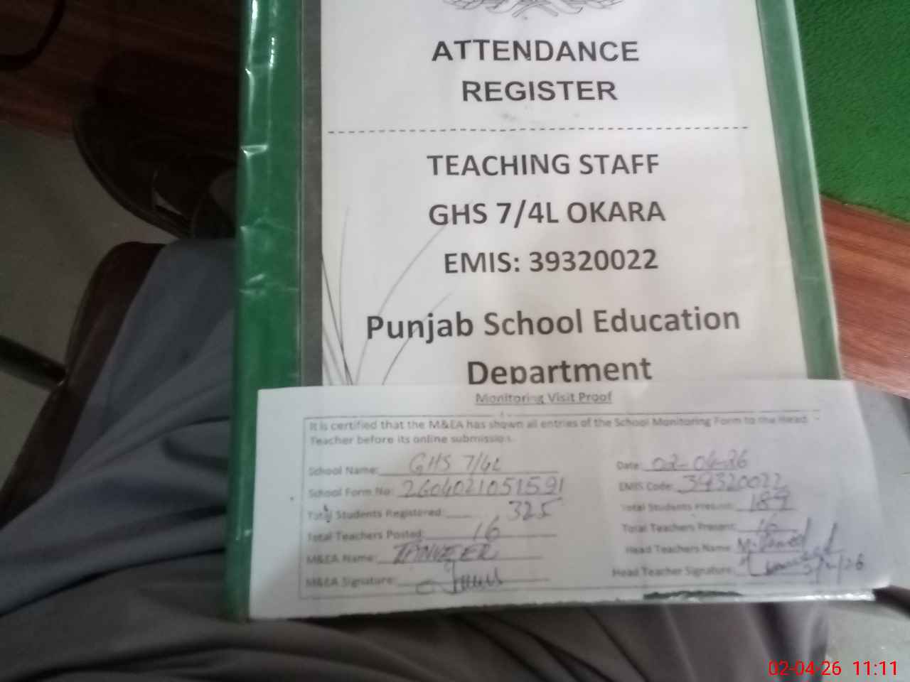 | EMIS Code: 39320022 | Name of School: GHS 7/4-L OKARA | |||