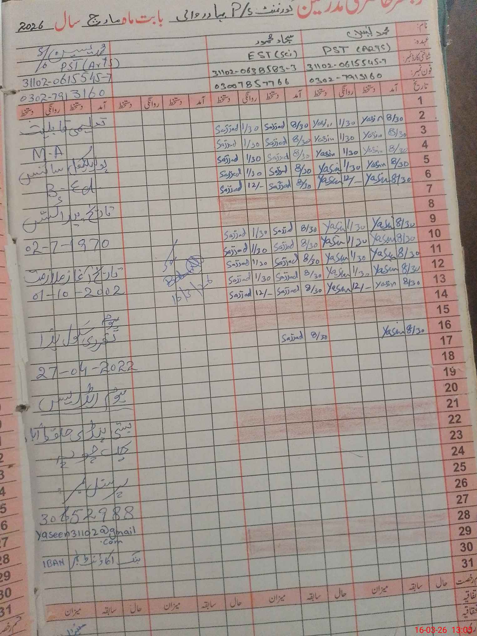 | Name: Mu**** Ya**** Designation: (School Headmaster's/Headmistress's) Pst Phone/Cell Number: 03**** |