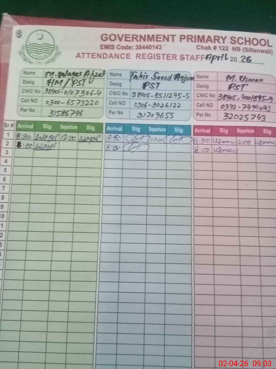 | Name: Mu**** Wa**** Designation: (School Headmaster's/Headmistress's) PST Phone/Cell Number: 03**** |