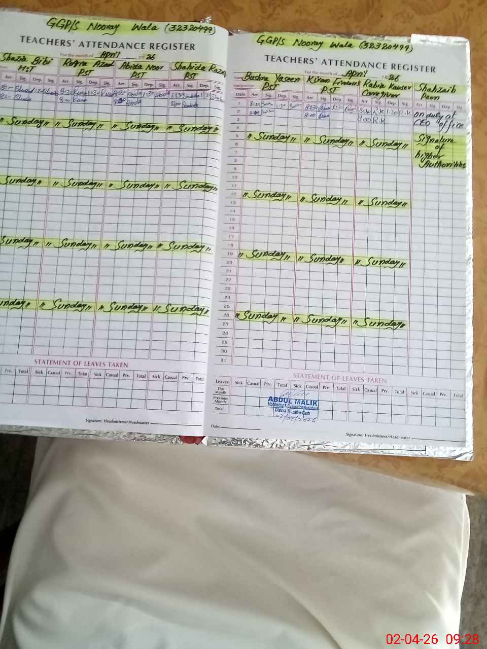 | EMIS Code: 32320499 | Name of School: GGPS NOORAY WALA | |||