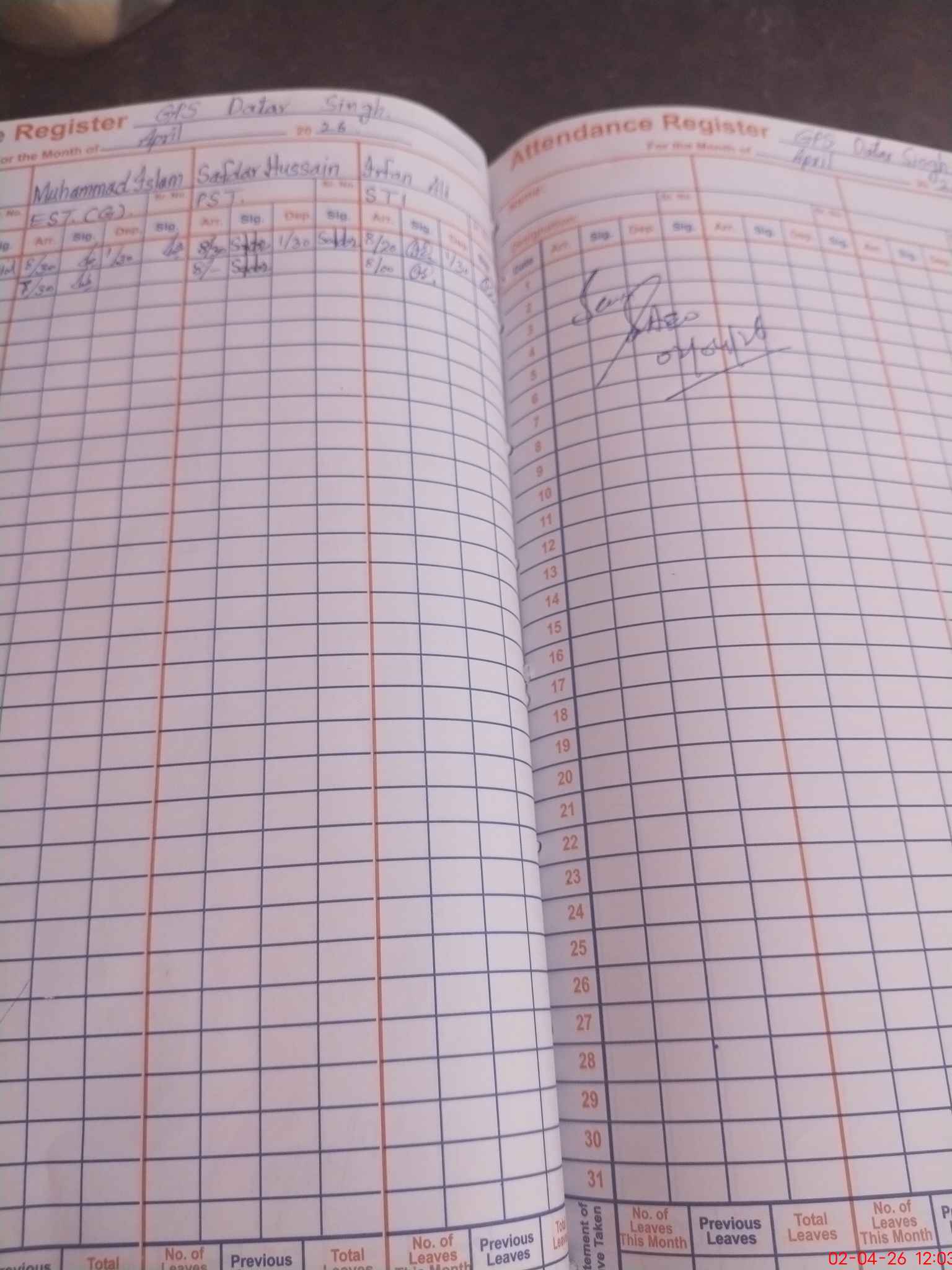 | Attendance Register | Head Teacher | MEA with School | Visit Proof |