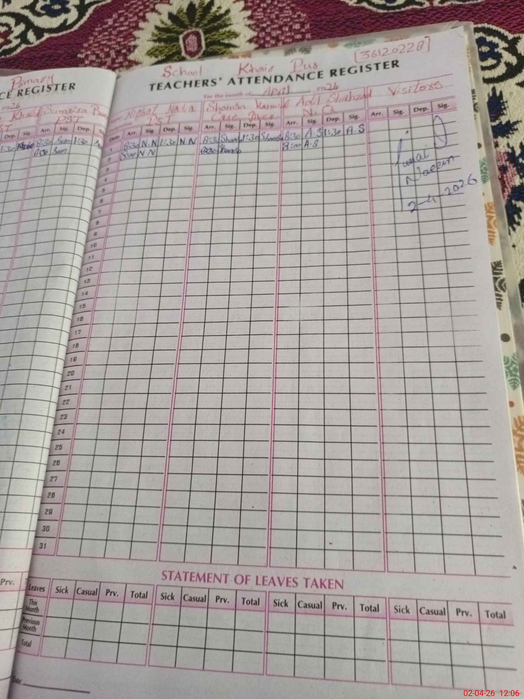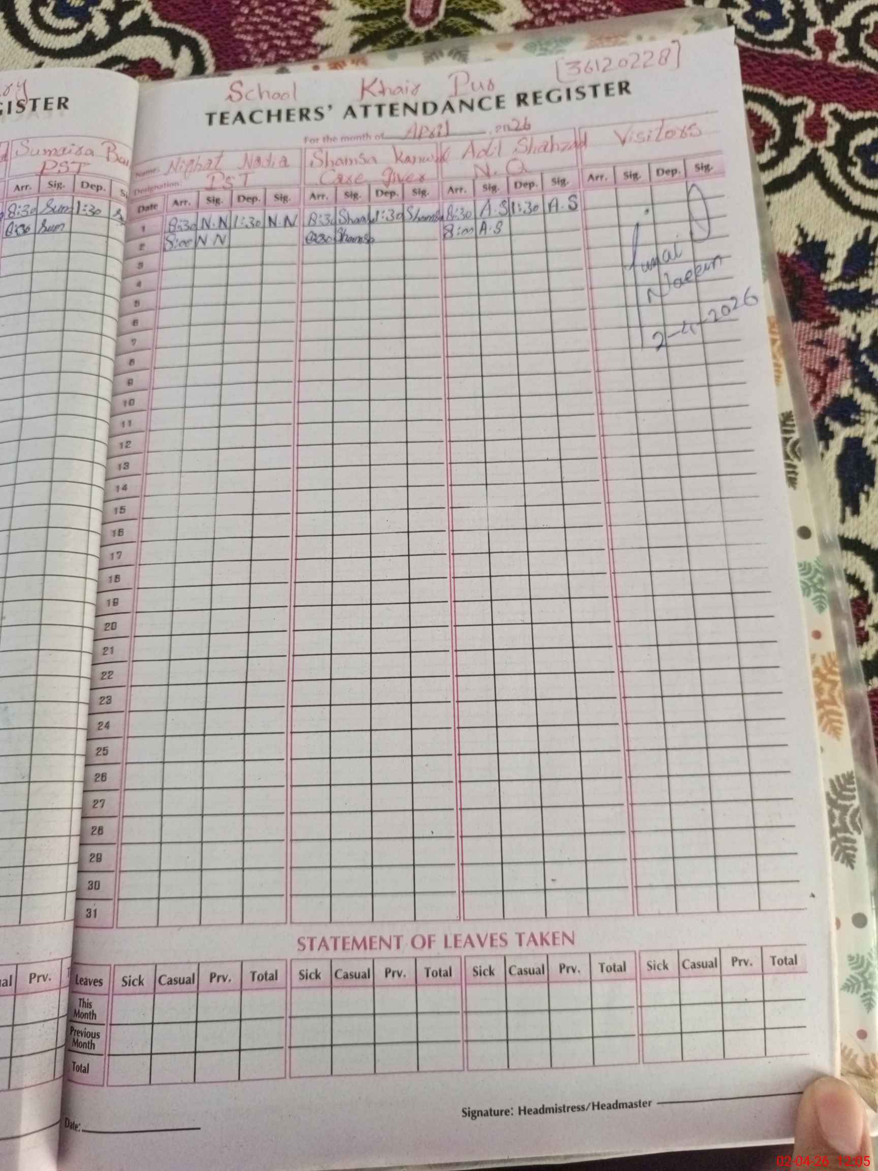 | EMIS Code: 36120228 | Name of School: GMPS KHAIR PUR SHUJABAD | |||