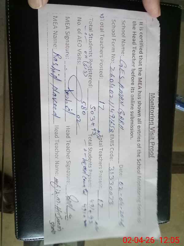 | Attendance Register | Head Teacher | MEA with School | Visit Proof |