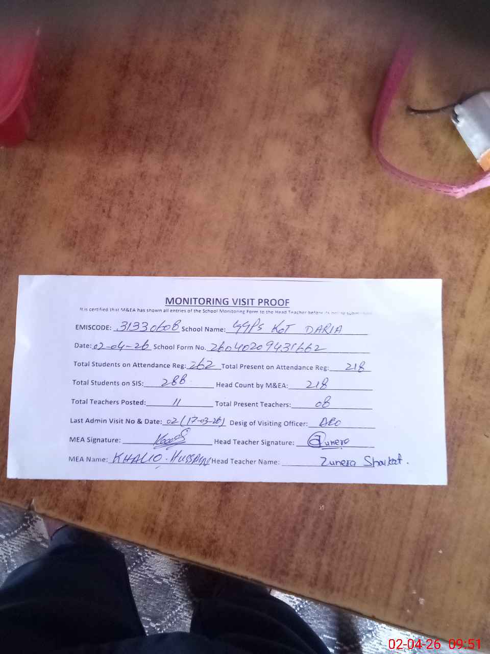 | EMIS Code: 31330608 | Name of School: GGPS KOT DARIA | |||