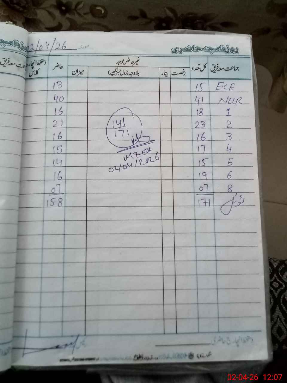 | CNIC | Full Name | Designation | R/C | Absence During Last Calender Month |
