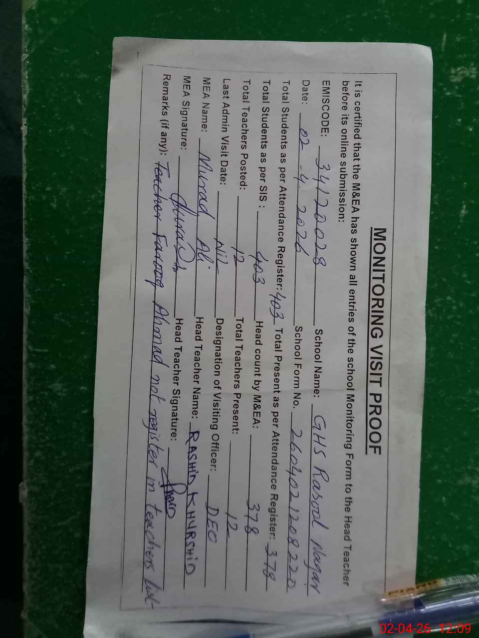 | EMIS Code: 34120028 | Name of School: GHS RASOOL NAGAR | |||