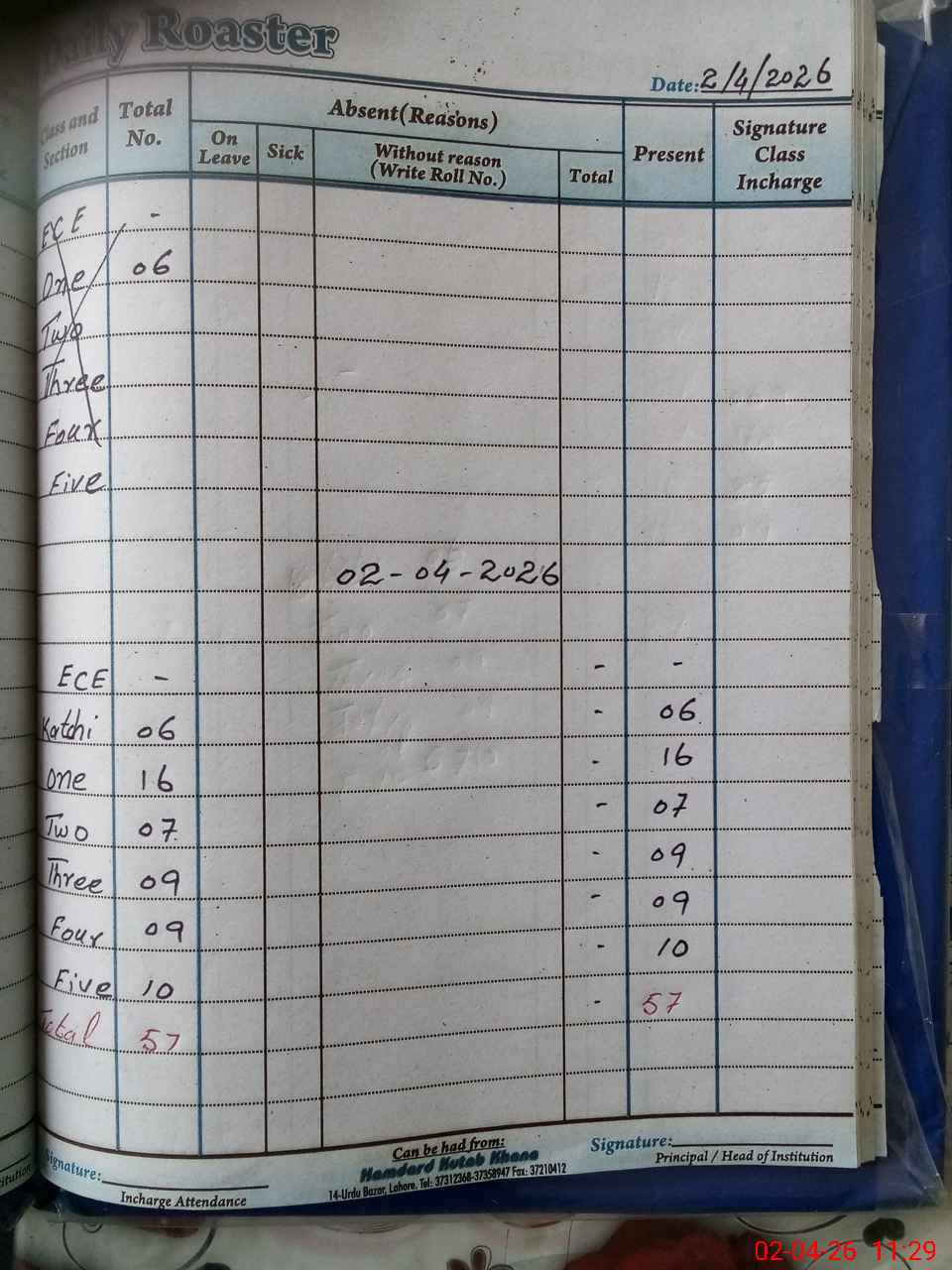 | Remarks (Use Separate Page if Required): books record not available as no fresh books issued yet | |||||