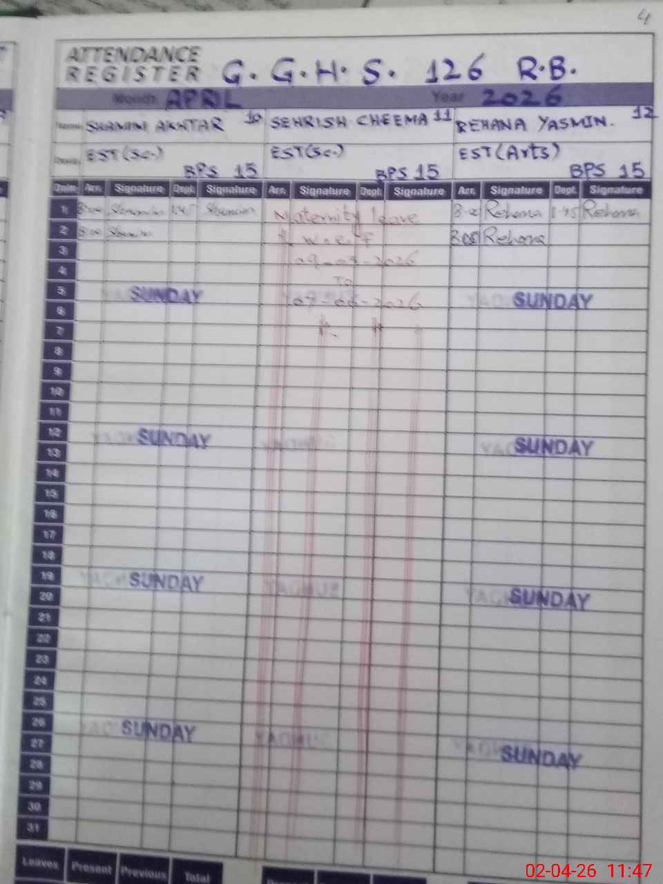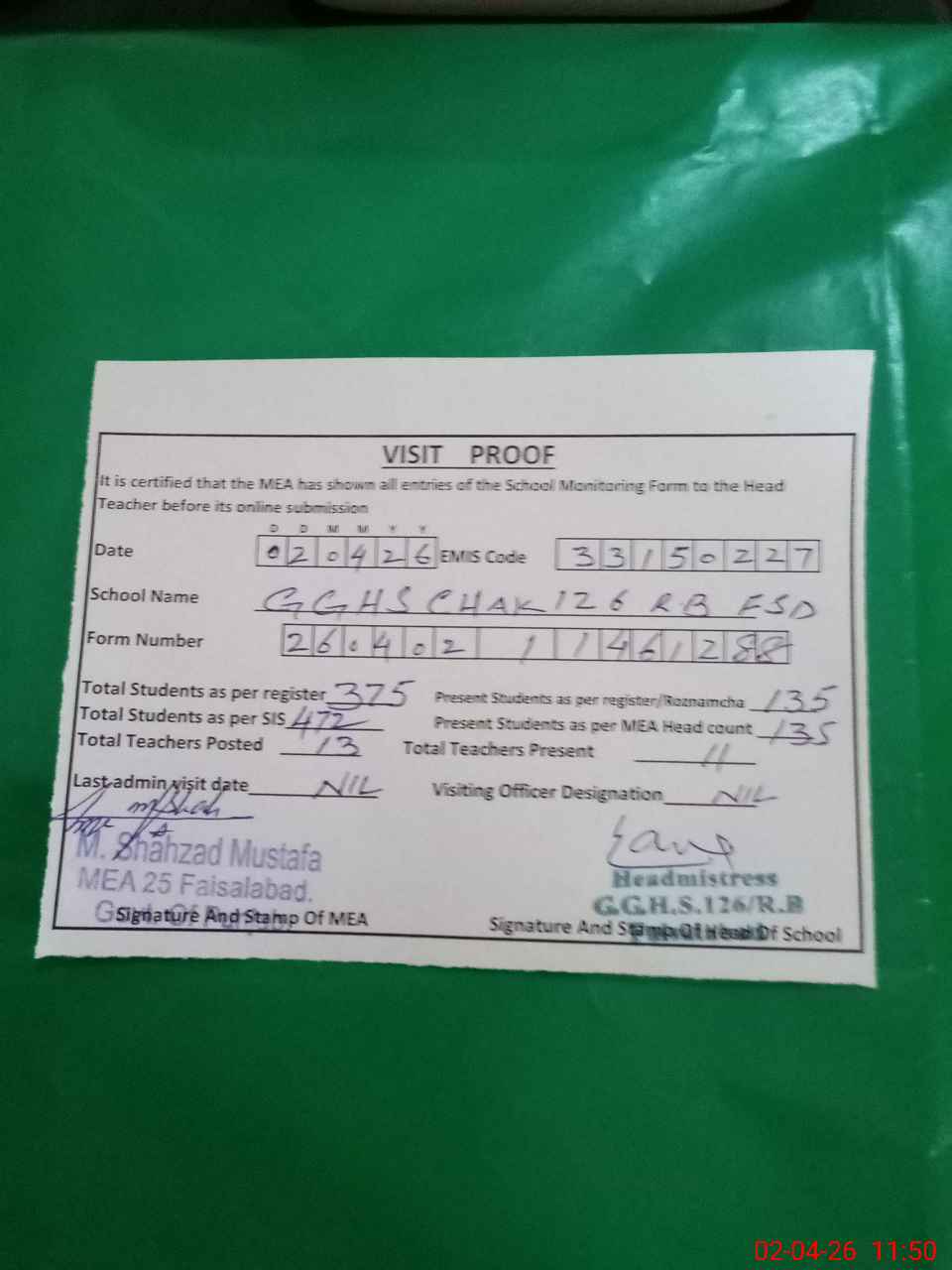 | EMIS Code: 33150227 | Name of School: GGHS CHAK 126 RB FSD | |||