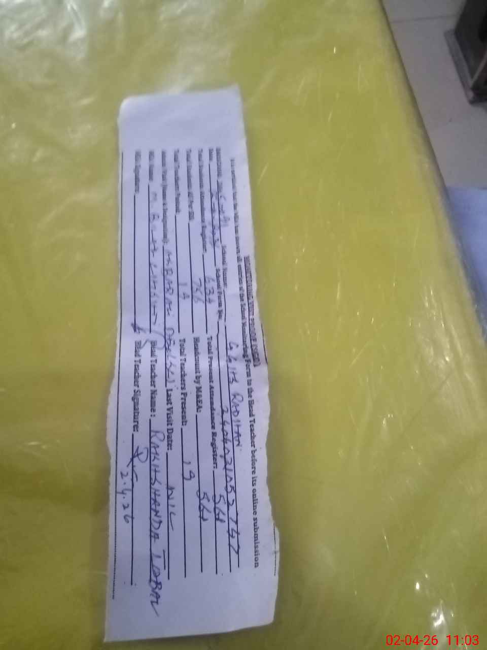 | Attendance Register | Head Teacher | MEA with School | Visit Proof |