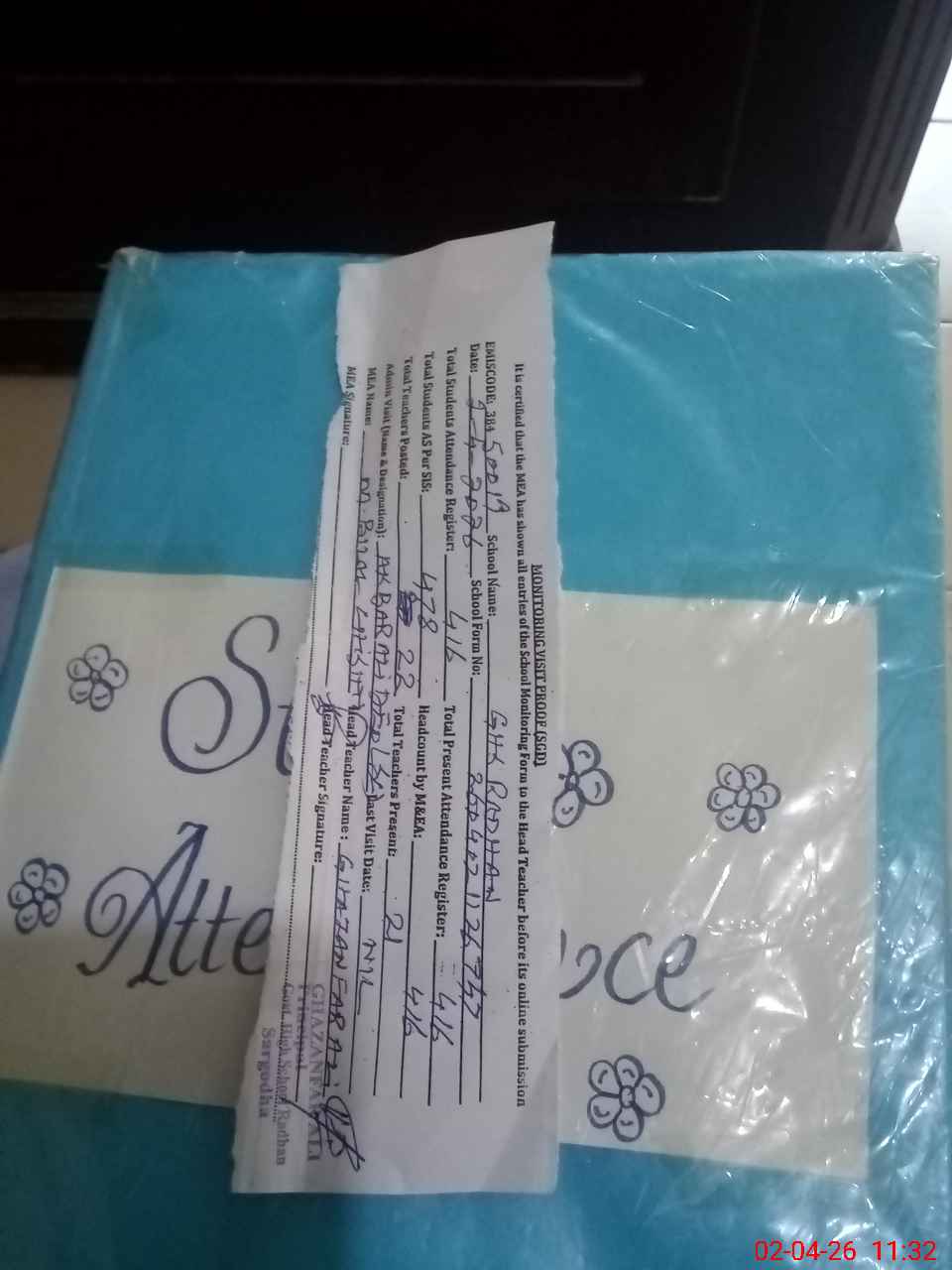 | Attendance Register | Head Teacher | MEA with School | Visit Proof |