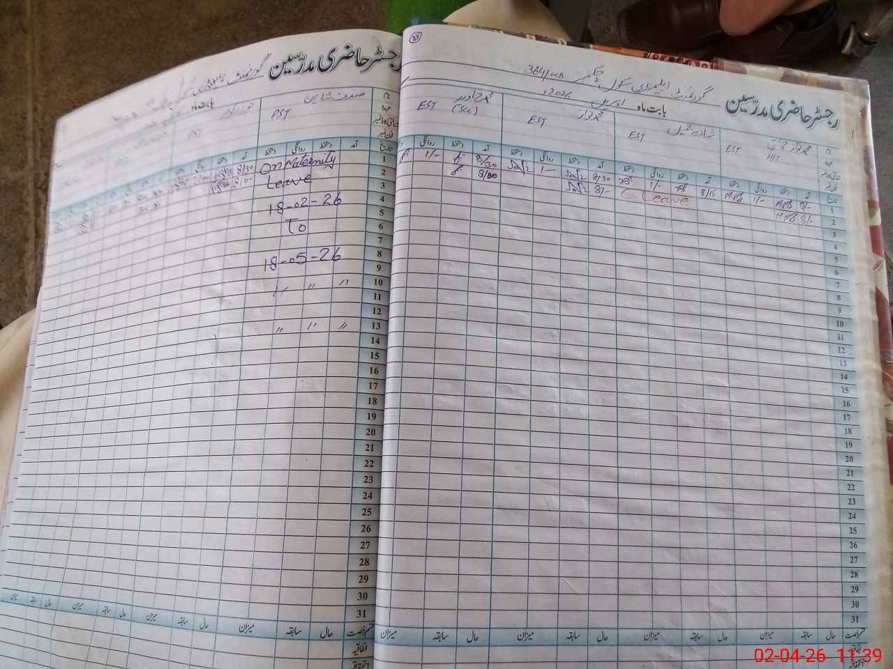| Leave | Duty | Absent | Maternity | Medical | Ex- Pak |