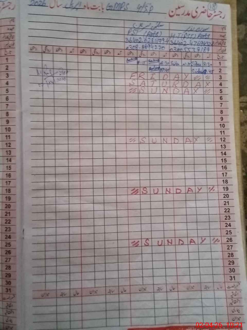 | Name: Si**** Na**** Designation: (School Headmaster's/Headmistress's) PST Phone/Cell Number: 03**** |