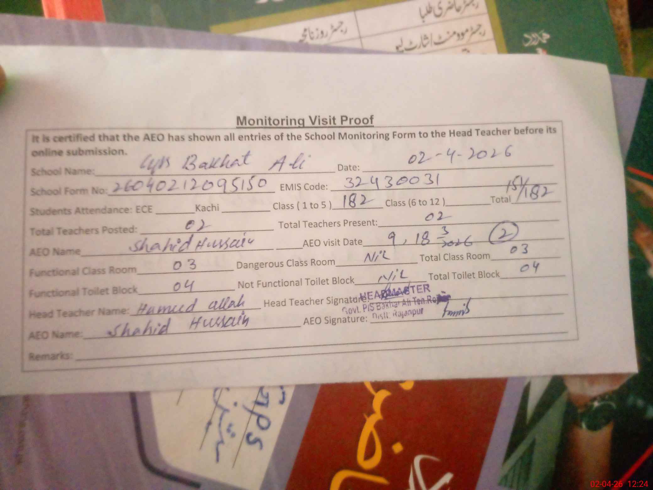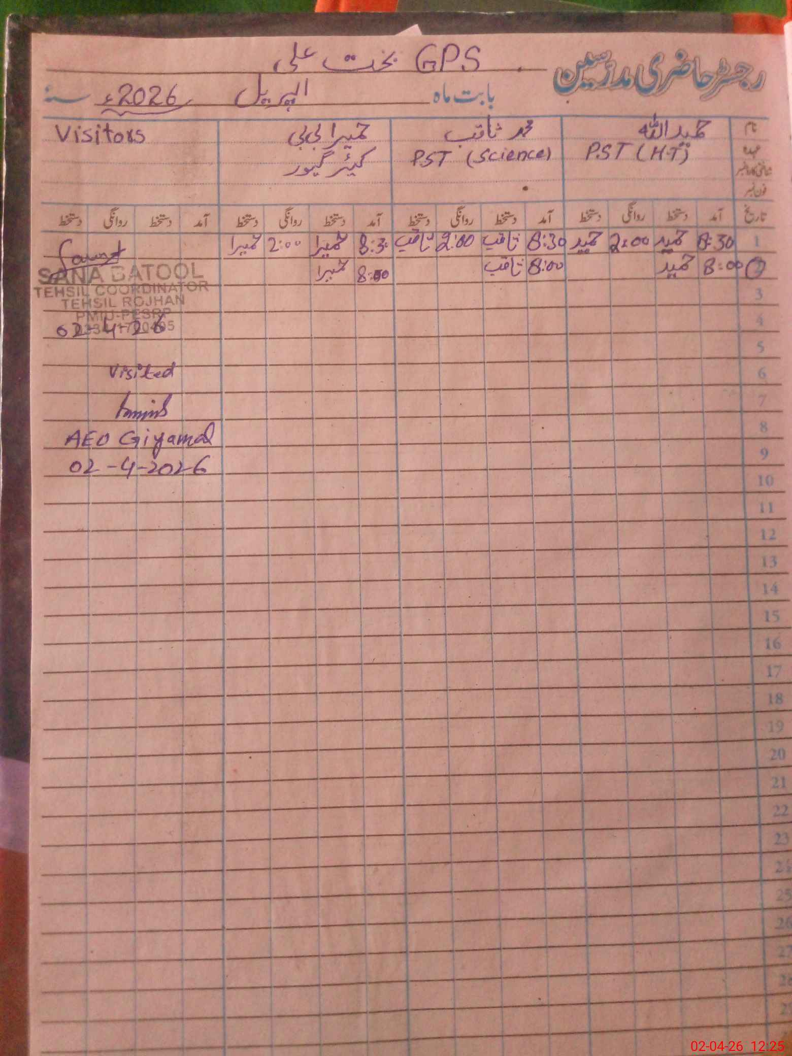| EMIS Code: 32430031 | Name of School: GPS BAKHAT ALI | |||