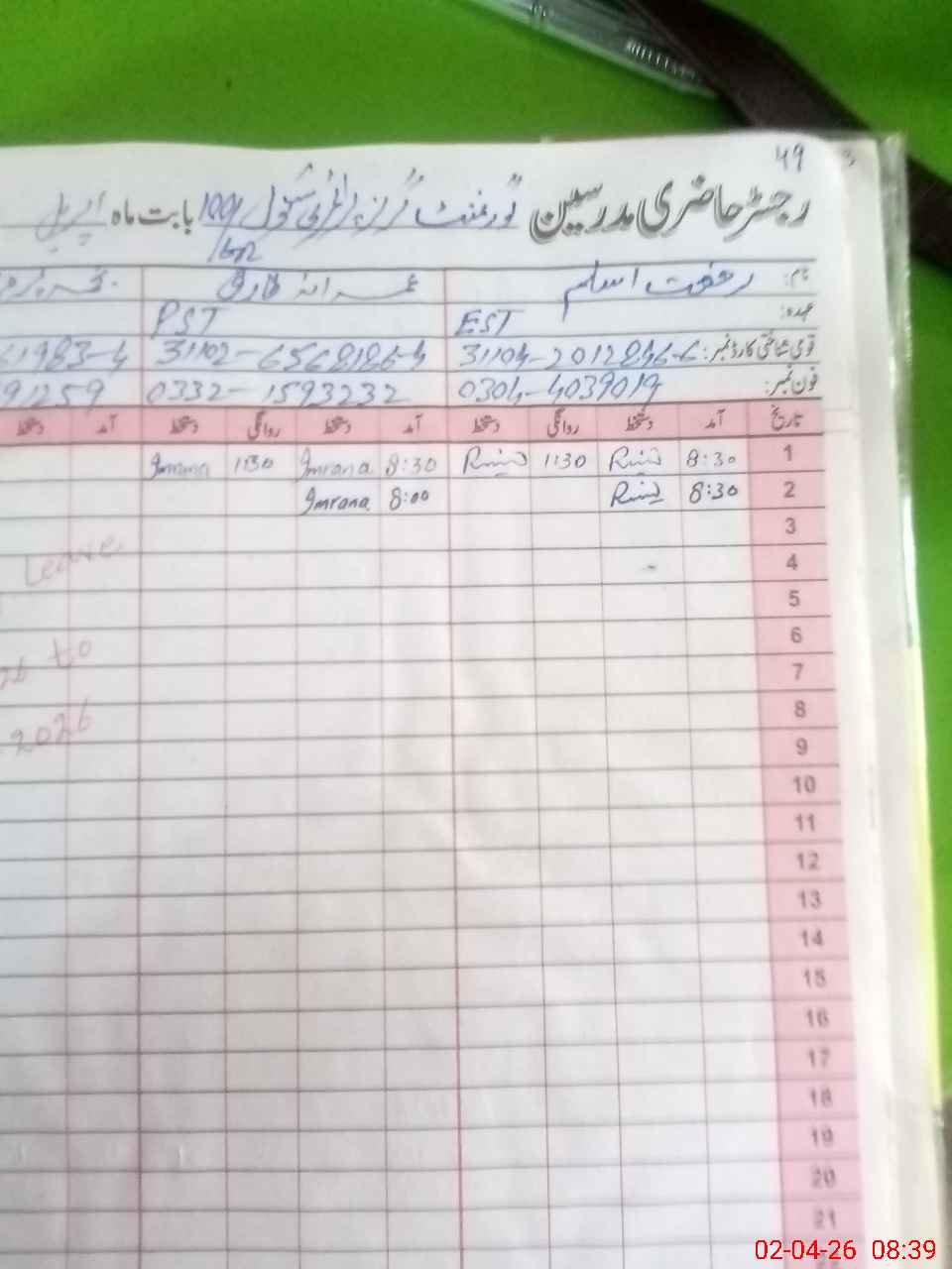 | Name: Ri**** As**** Designation: (School Headmaster's/Headmistress's) EST Phone/Cell Number: 03**** |
