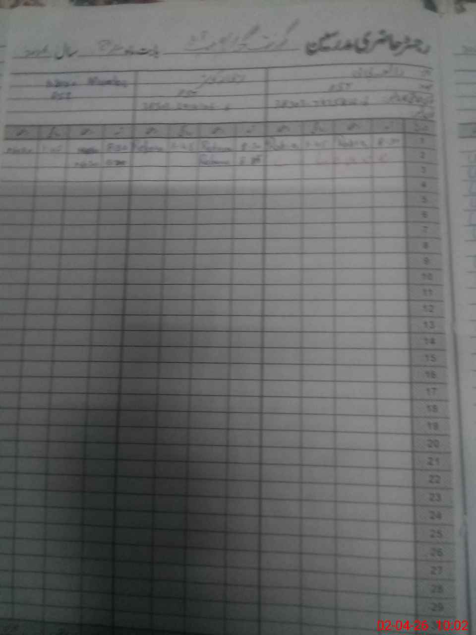 | CNIC | Full Name | Designation | R/C | Absence During Last Calender Month |