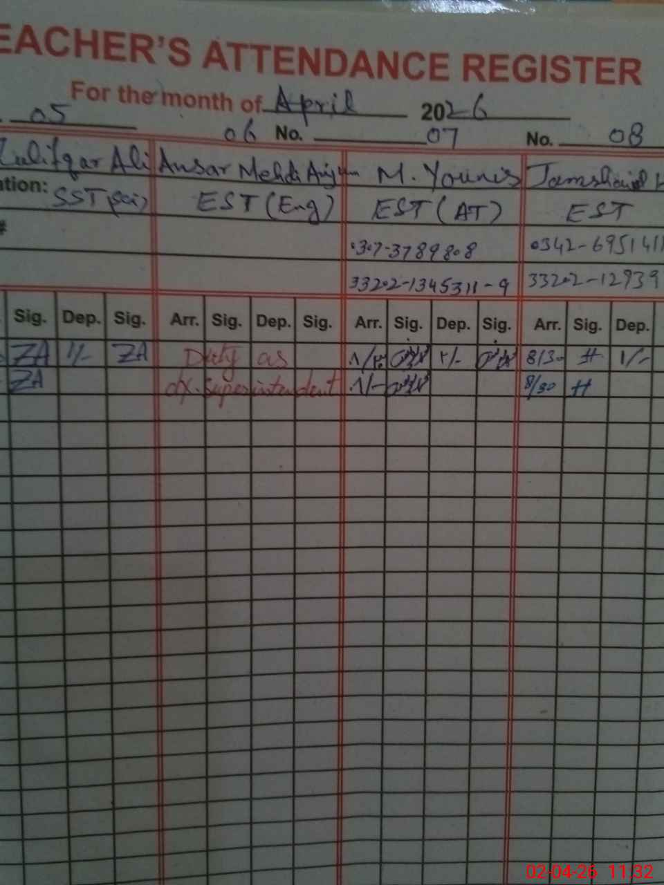 | Name: Ja**** Iq**** Kh**** Designation: (School Headmaster's/Headmistress's) Incharge Headmaster Phone/Cell Number: 03**** |