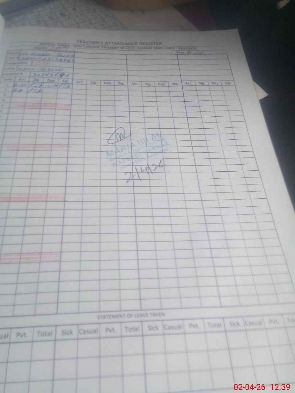 | EMIS Code: 38470426 | Name of School: GMPS JHAMAT | |||