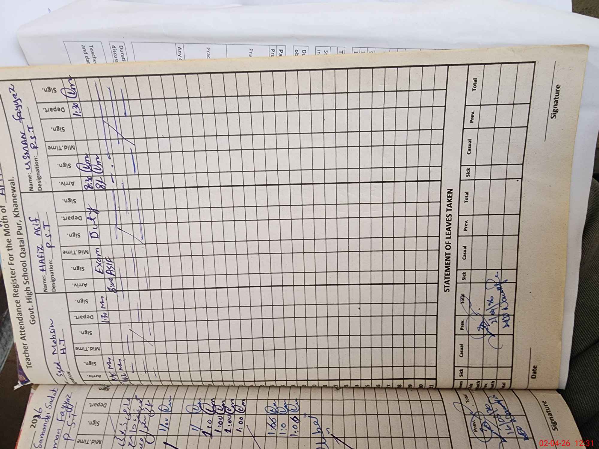 | Leave | Duty | Absent | Maternity | Medical | Ex- Pak |