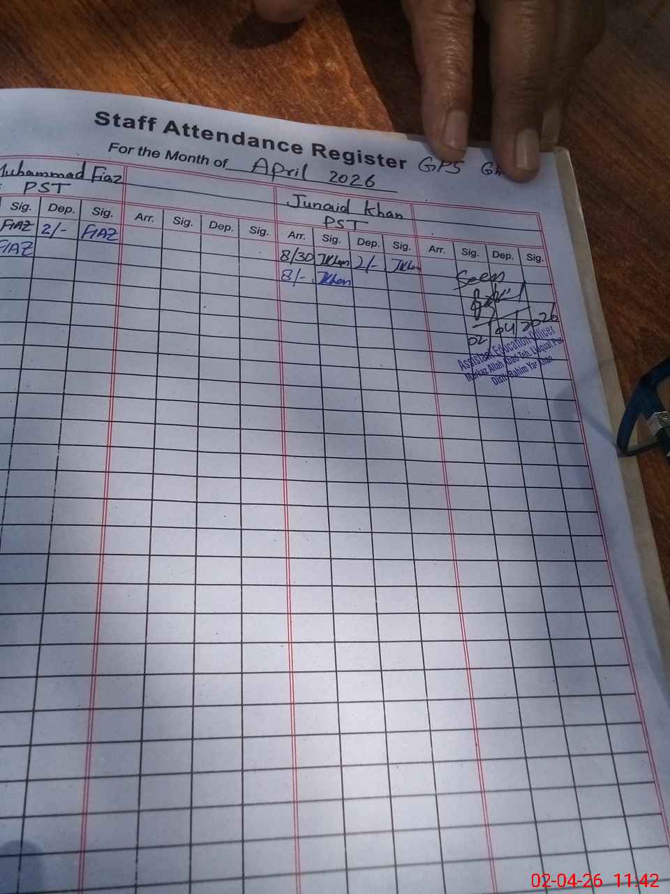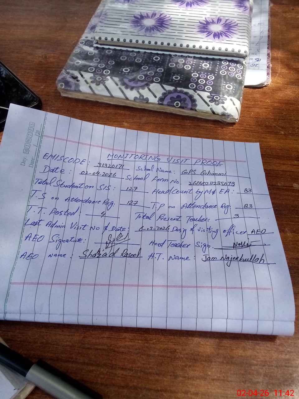 | Attendance Register | Head Teacher | MEA with School | Visit Proof |