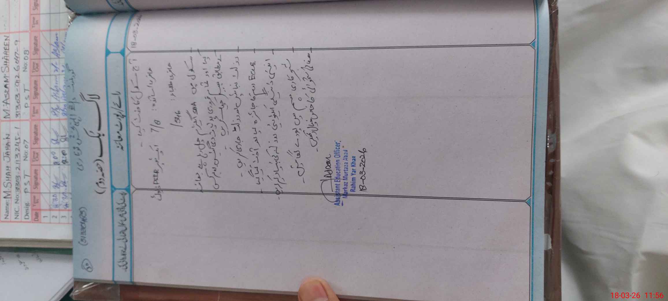 | Name: Fa**** Aj**** Designation: (School Headmaster's/Headmistress's) E S T Phone/Cell Number: 03**** |