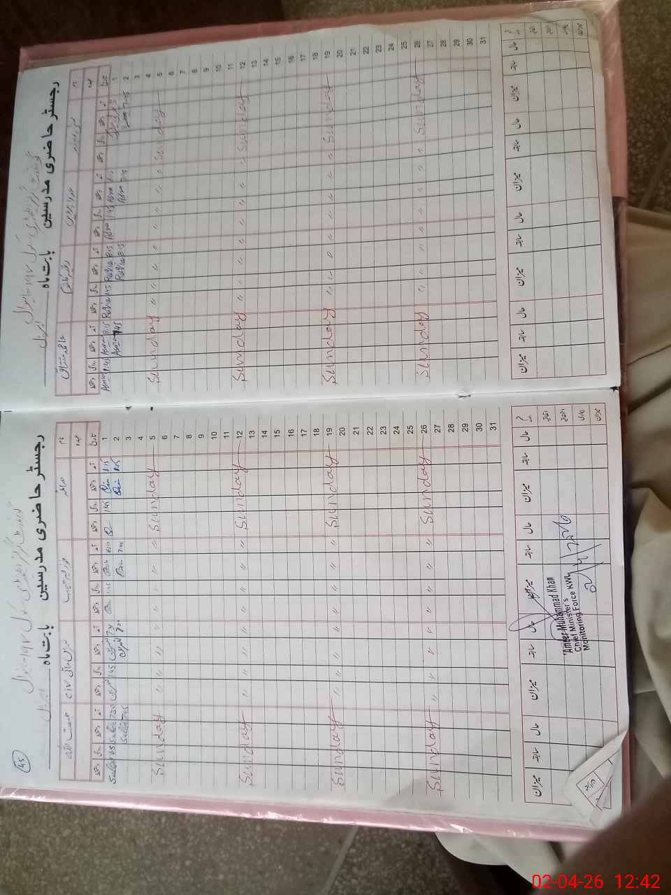 | CNIC | Full Name | Designation | R/C | Absence During Last Calender Month |