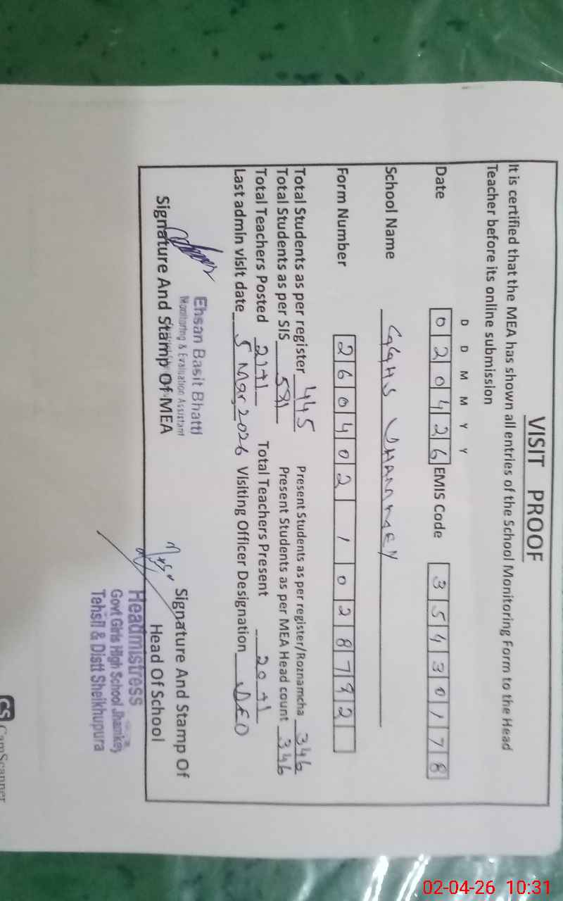 | EMIS Code: 35430178 | Name of School: GGHS JHAMKEY | |||