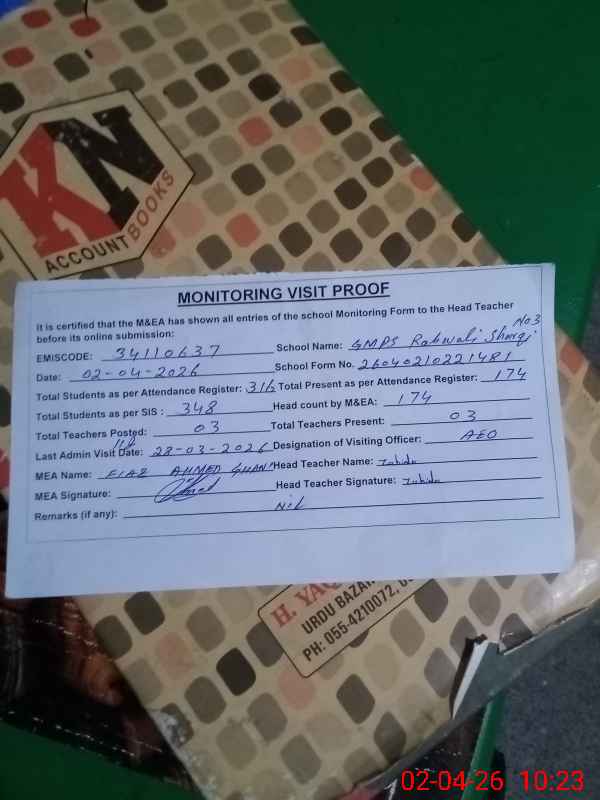 | EMIS Code: 34110637 | Name of School: GMPS RAHWALI SHARQI NO.3 | |||