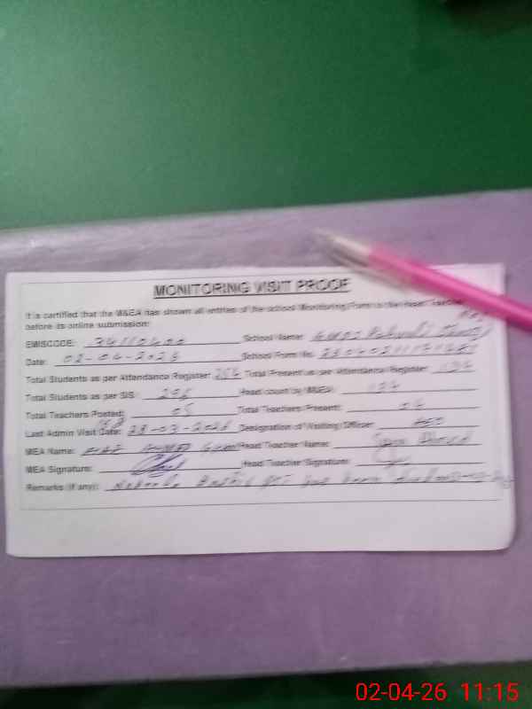 | Remarks (Use Separate Page if Required): Students Attendance Registers are not updated today Nabeela Bashir PST has been died on 13 Mar, 2025 NSB Record Register is not updated at the time of visit fresh bank statement is not available Data as per provided by School Staff and found during physical visit | |||||