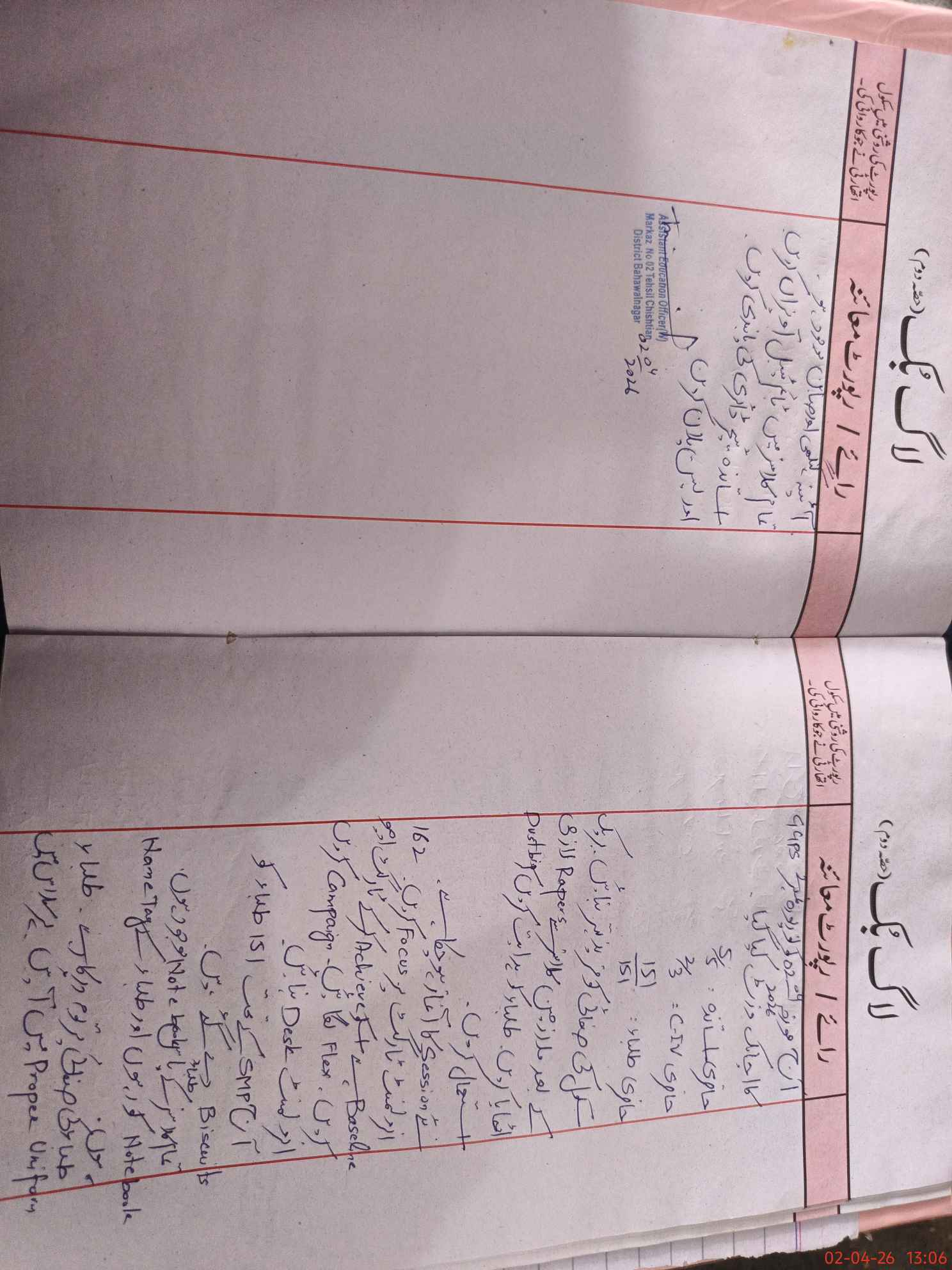 | District: BAHAWALNAGAR | Tehsil: CHISHTIAN | Markaz: CTN -II-FEMALE | Level: Primary | |
