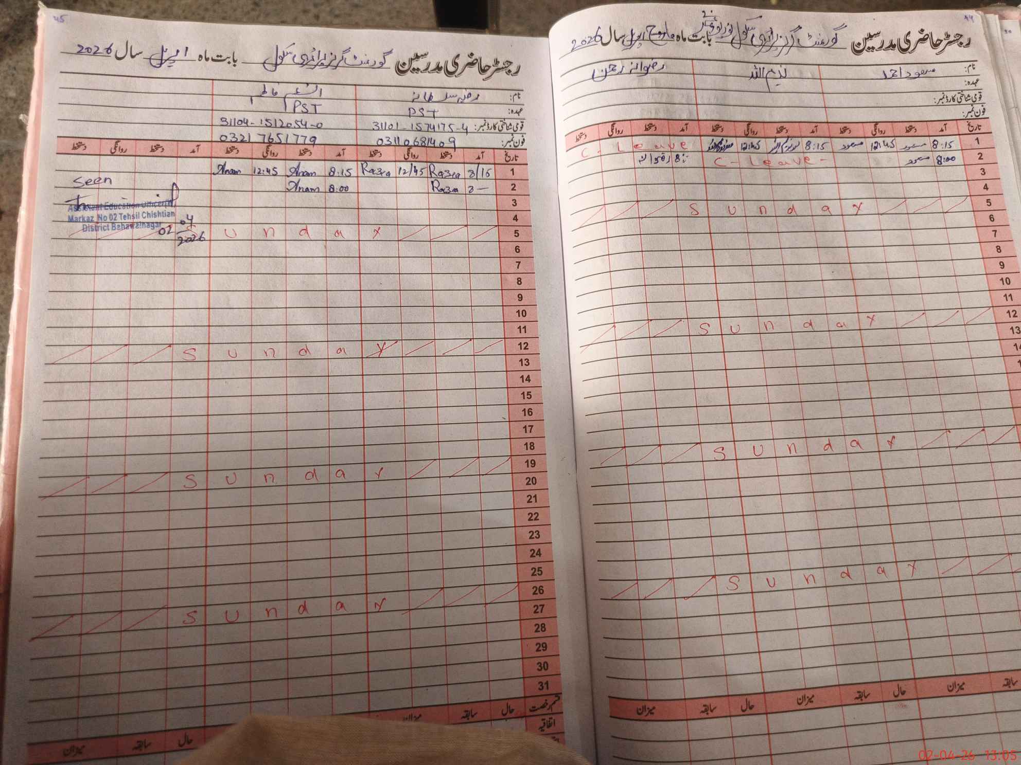 | Name: Ru**** Sa**** Designation: (School Headmaster's/Headmistress's) PST Phone/Cell Number: 03**** |