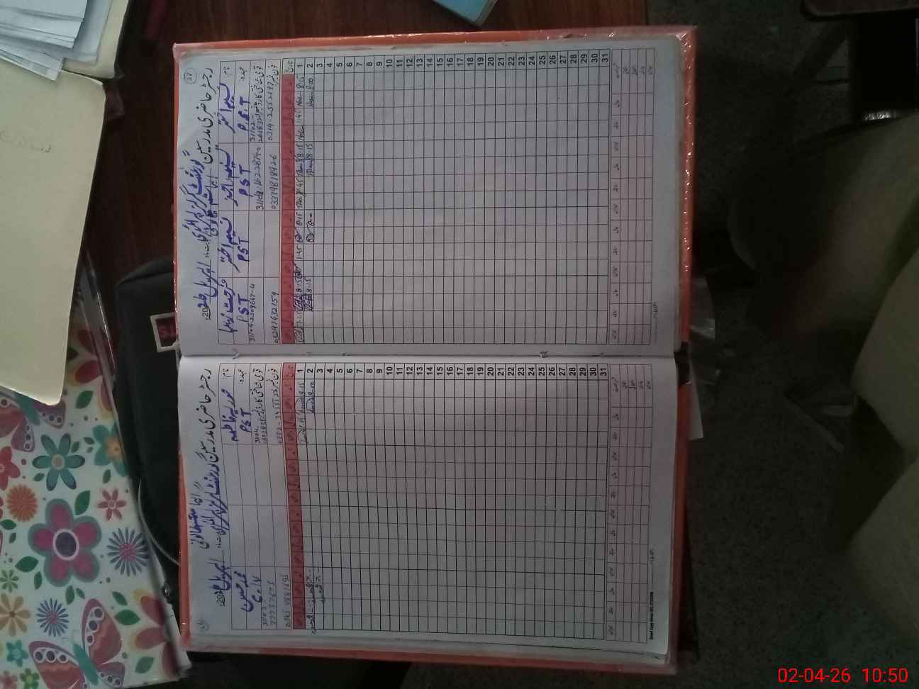 | CNIC | Full Name | Designation | R/C | Absence During Last Calender Month |