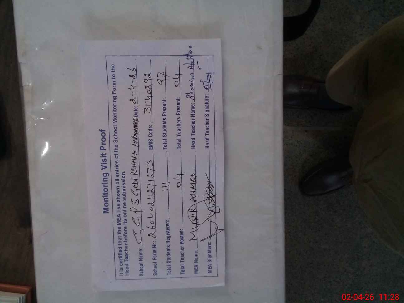 | EMIS Code: 31140292 | Name of School: GGPS GODI REHMAN HAROON ABAD | |||