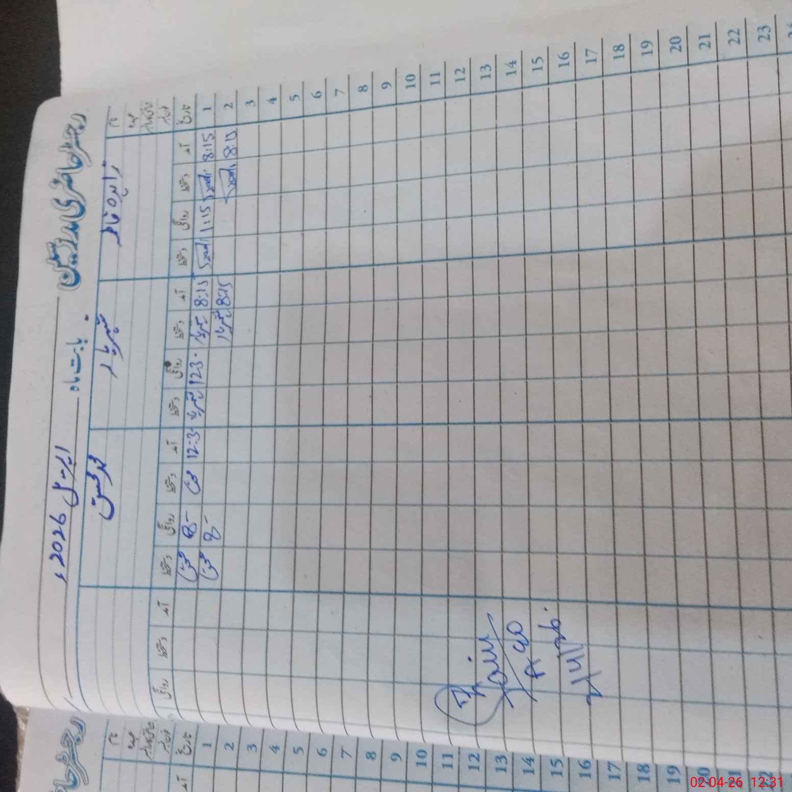 | CNIC | Full Name | Designation | R/C | Absence During Last Calender Month |