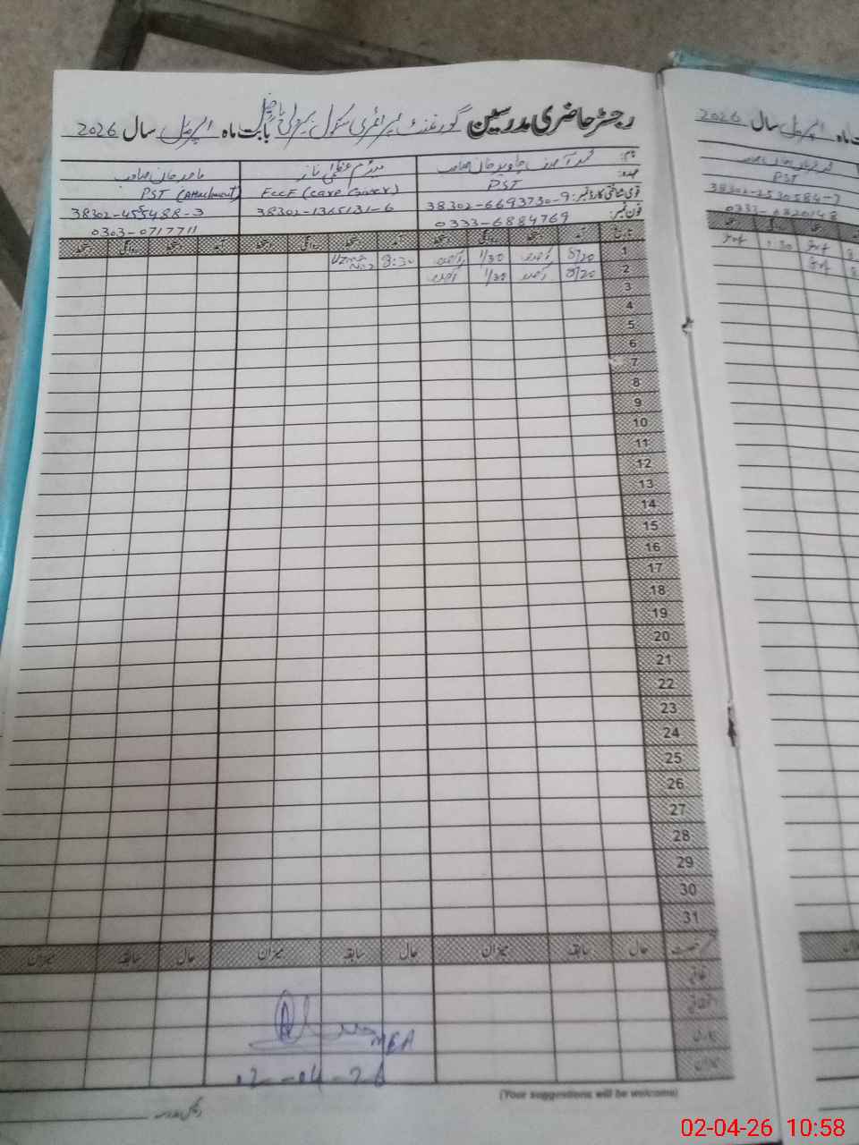 | Name: Mu**** Ir**** Kh**** Designation: (School Headmaster's/Headmistress's) PST Phone/Cell Number: 03**** |