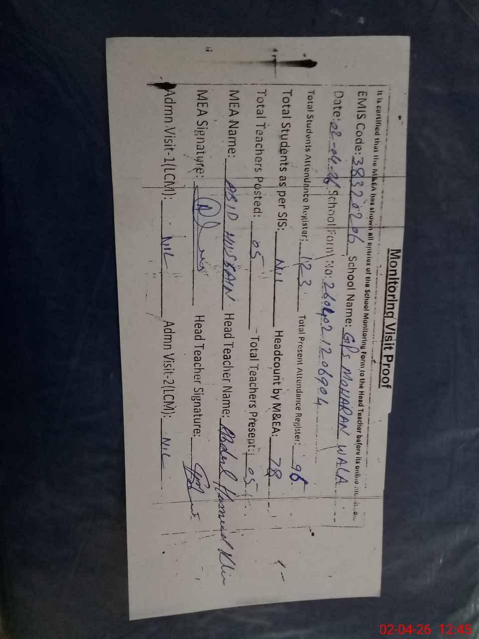 | EMIS Code: 38320206 | Name of School: GPS MOHARAN WALA | |||
