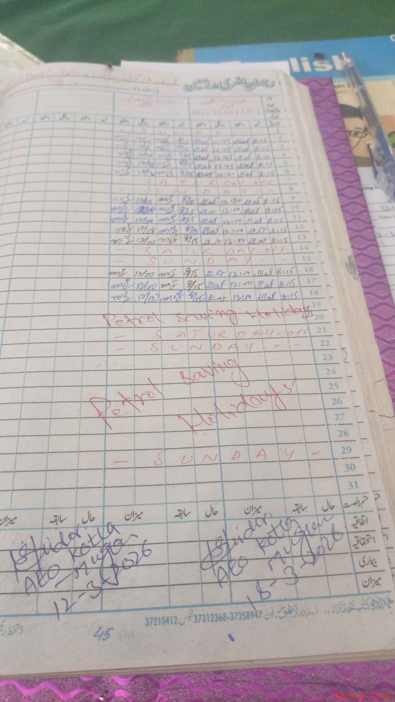 | Leave | Duty | Absent | Maternity | Medical | Ex- Pak |