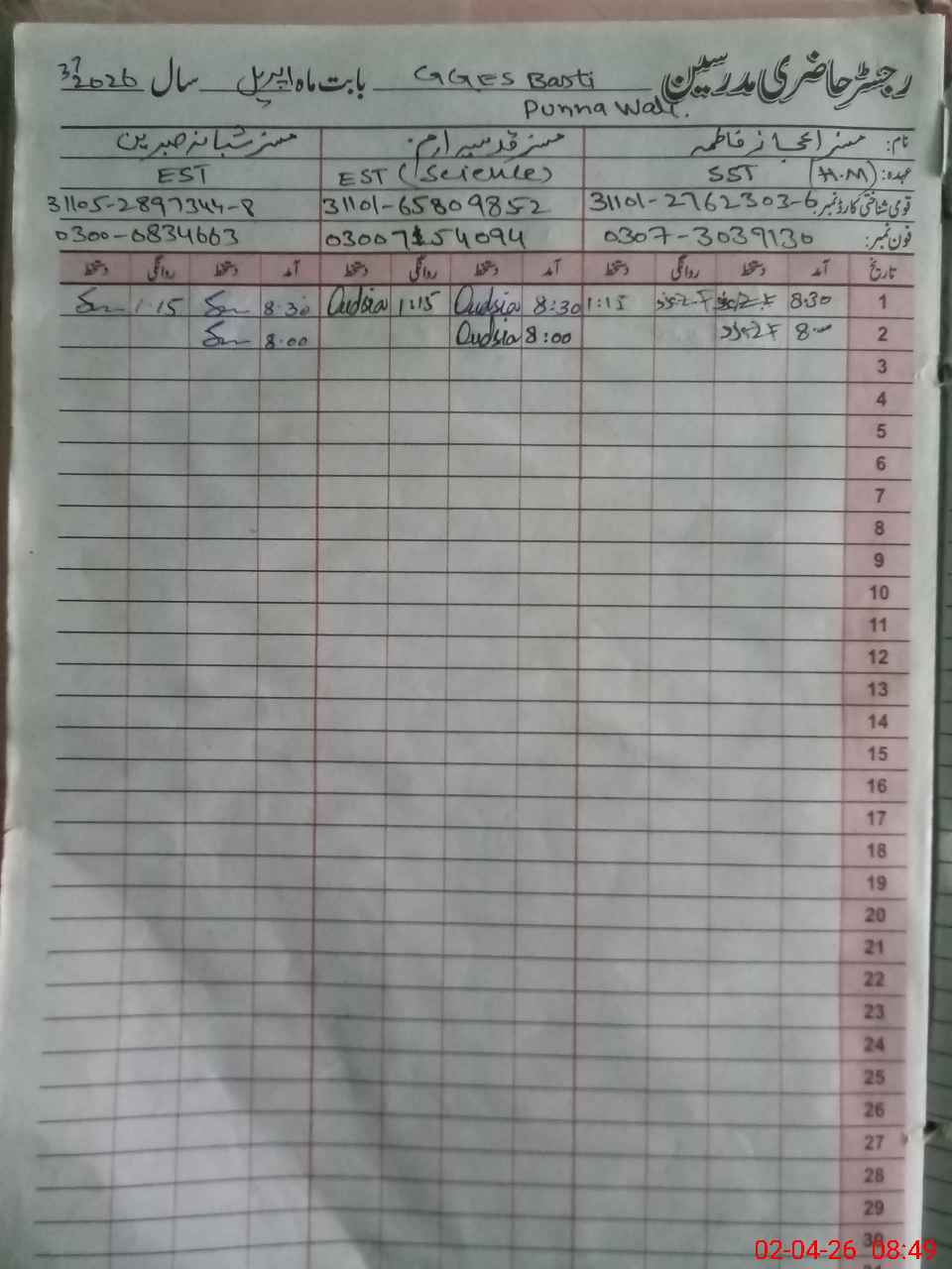 | EMIS Code: 31150045 | Name of School: GGES BASTI PUNA WALI | |||