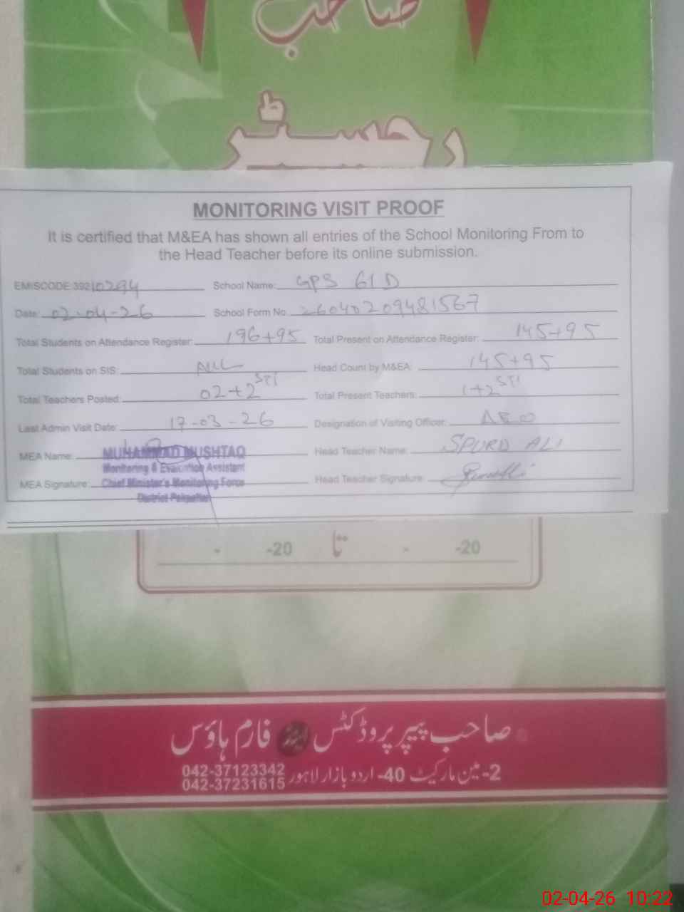 | EMIS Code: 39210294 | Name of School: GPS 61/D | |||